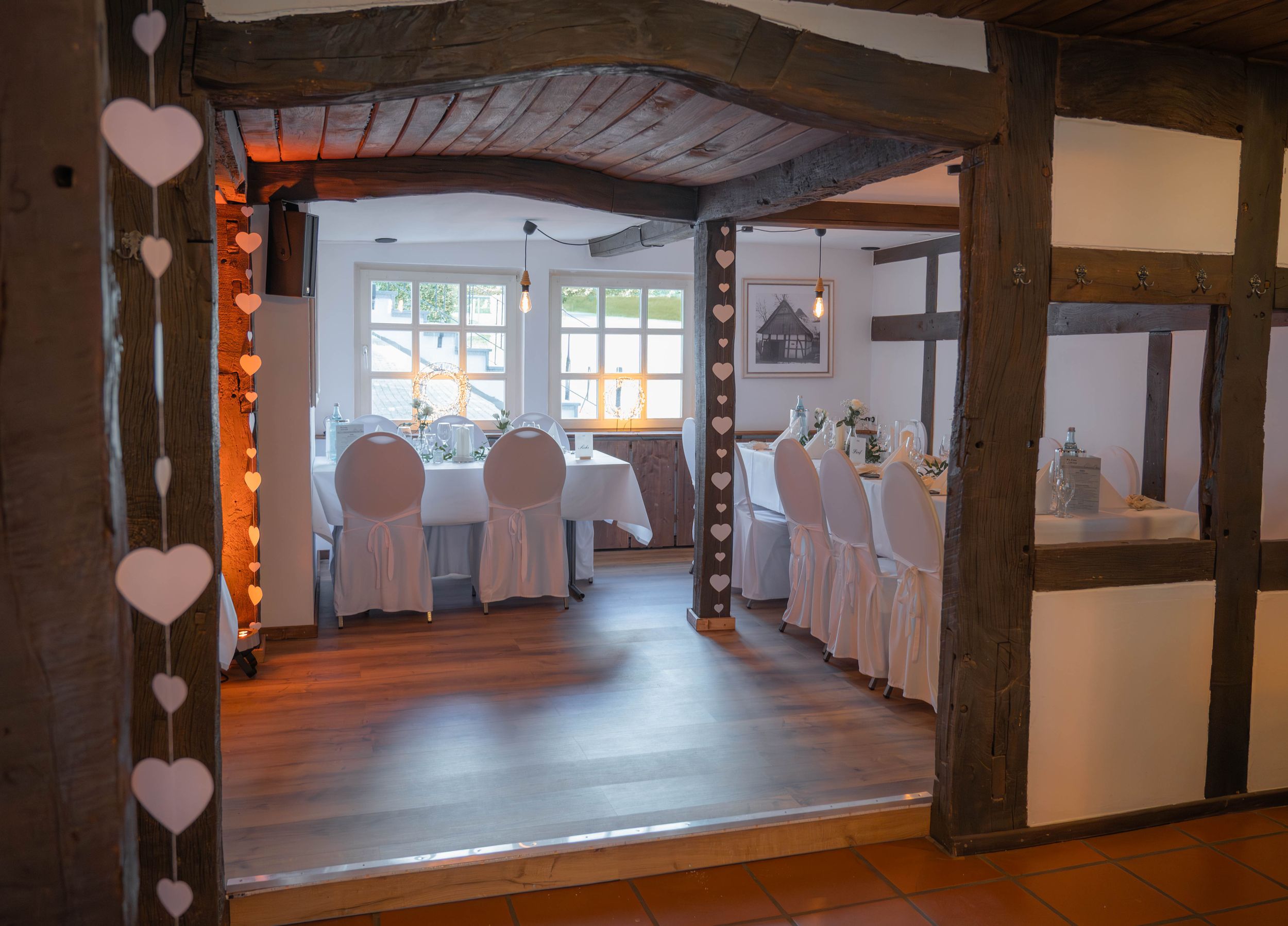 Der kleine Festsaal Niedermeiers vereint traditionellen Charme mit moderner Ausstattung und schafft so eine gemütliche und einladende Atmosphäre. Ob für intime Feiern oder geschäftliche Anlässe – dieser Raum bietet den perfekten Rahmen für unvergessliche Momente.